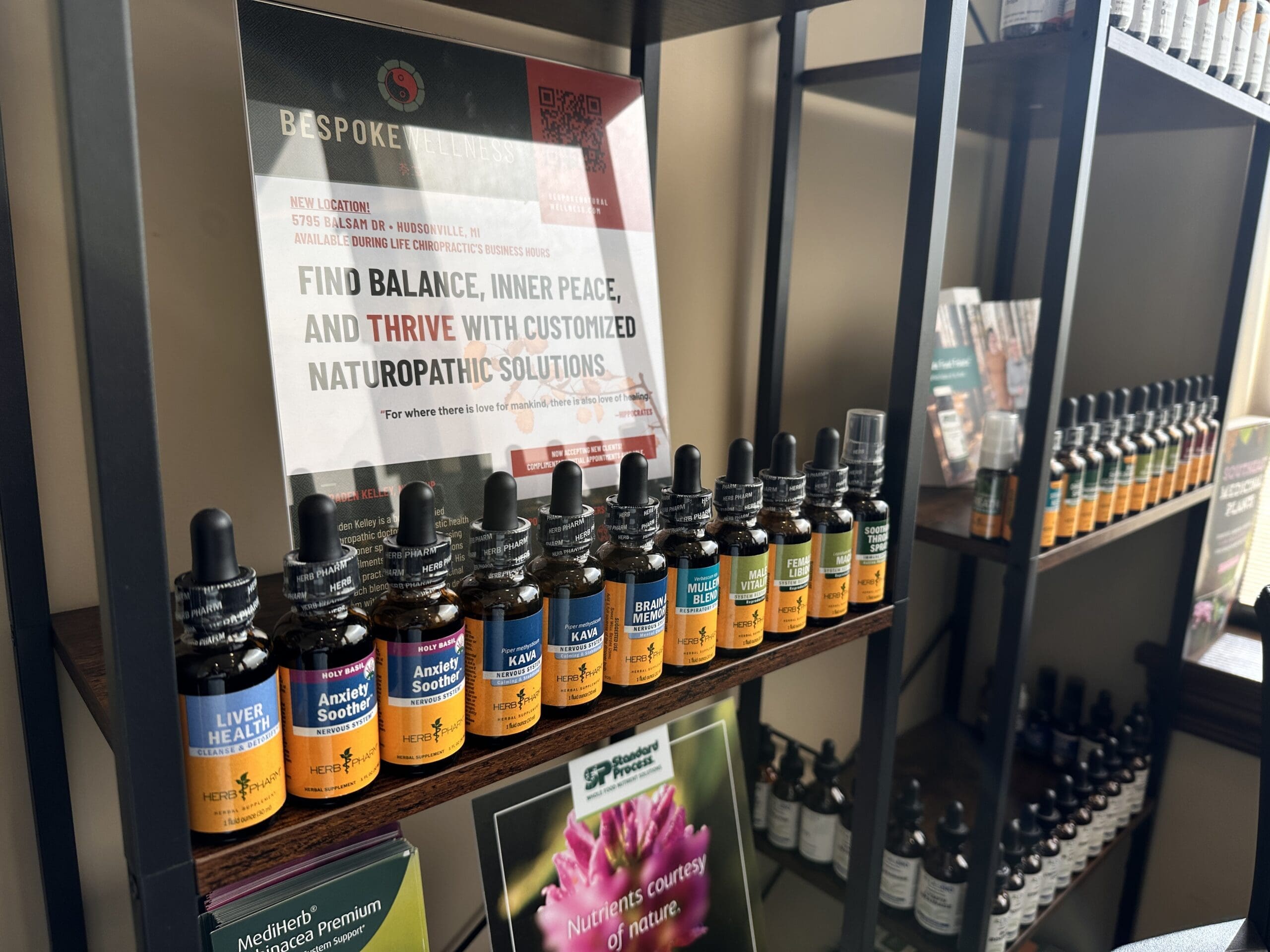 At Bespoke Wellness, our mission is to empower you on your journey to lasting health and well-being. Our naturopathic wellness practice is conveniently located within the office of Life Chiropractic in Hudsonville, MI, and we are dedicated to serving our community and the greater Grand Rapids area, including Grandville, Jenison, Allendale, Cascade, and Forest Hills. We believe true wellness is not just about treating symptoms, but about addressing the underlying causes of what ails you.